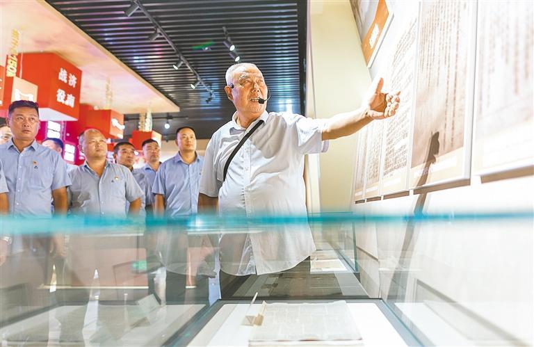 7月11日,75歲的朱村抗日戰(zhàn)斗紀(jì)念館義務(wù)講解員王經(jīng)臣為參觀者講述朱村紅色歷史文化。朱村組建了專業(yè)的講解員隊(duì)伍,創(chuàng)作了情景劇《第一碗餃子敬英烈》,把紅色故事搬上舞臺(tái),深受游客喜愛。