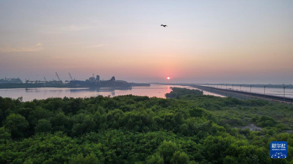 這是7月15日在印度尼西亞萬丹省西冷爪哇7號(hào)項(xiàng)目附近海域拍攝的紅樹林(無人機(jī)照片)。