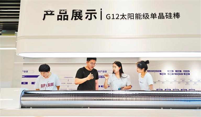 7月15日,訪客在中環(huán)產(chǎn)業(yè)園展廳參觀。作為呼和浩特市培育的“六大產(chǎn)業(yè)集群”重點(diǎn)項(xiàng)目之一,中環(huán)產(chǎn)業(yè)園正致力于打造具有全球優(yōu)勢(shì)的太陽(yáng)能硅晶體制造中心。