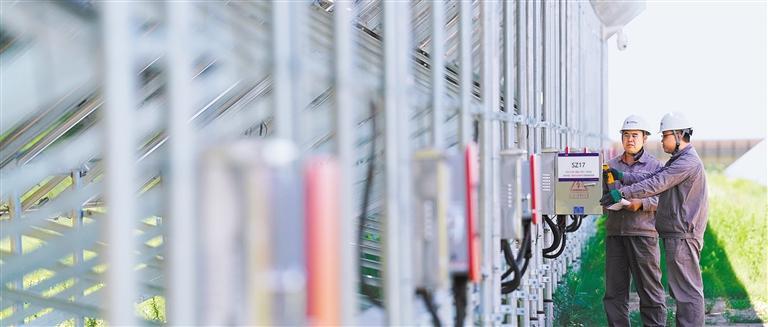 7月16日,中環(huán)產(chǎn)業(yè)園曙光光伏電站員工在檢查設(shè)備狀態(tài)。賽罕區(qū)在綠色能源推廣、應(yīng)用上持續(xù)發(fā)力,全面打造功能完備、設(shè)施齊全、管理科學(xué)、環(huán)境優(yōu)美的高質(zhì)量園區(qū)。
