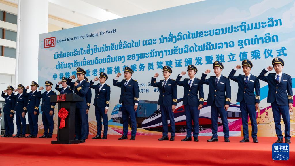 8月5日,在中老鐵路萬象站,中老鐵路首批14名老撾籍火車司機獲頒駕駛資格證書。