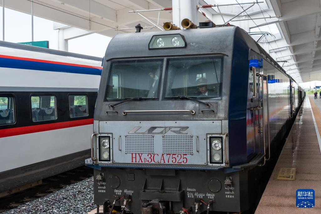 8月5日,由老撾籍火車司機獨立駕駛的滿載貨物的列車駛出中老鐵路萬象站。