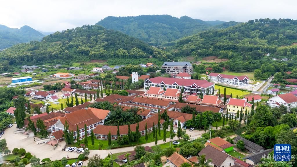 這是8月16日拍攝的老撾瑯勃拉邦醫(yī)院(無人機照片)。