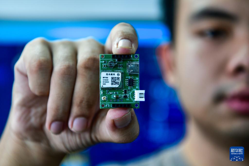 8月29日,學(xué)生在貴州大學(xué)省部共建公共大數(shù)據(jù)國家重點(diǎn)實(shí)驗(yàn)室展示一款高精度北斗定位芯片。