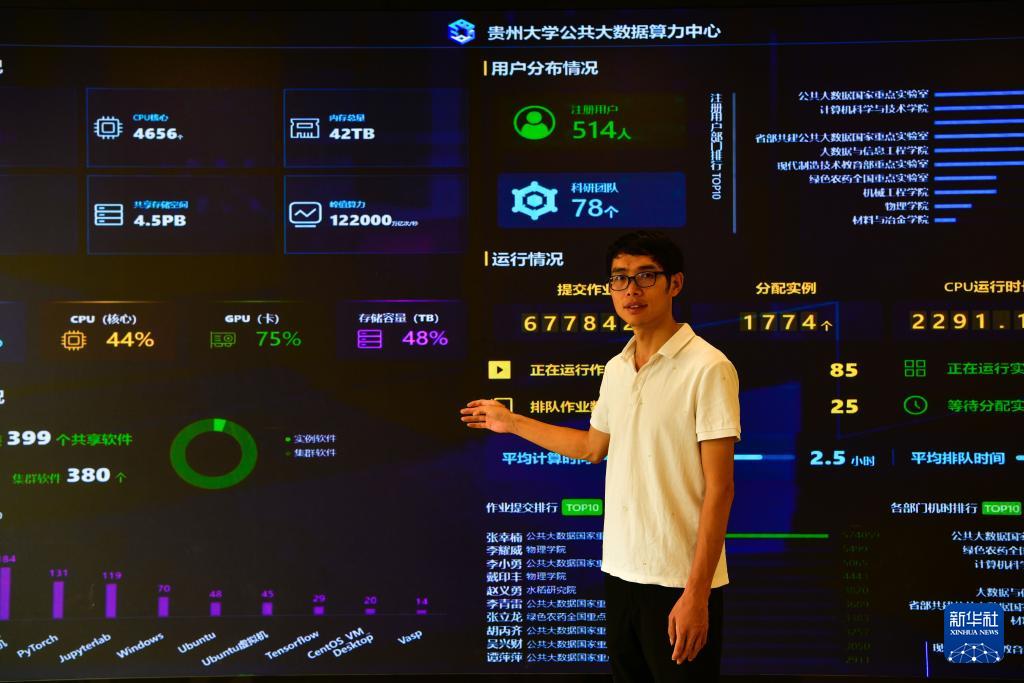 8月29日,工作人員在貴州大學(xué)省部共建公共大數(shù)據(jù)國家重點(diǎn)實(shí)驗(yàn)室算力中心作介紹。