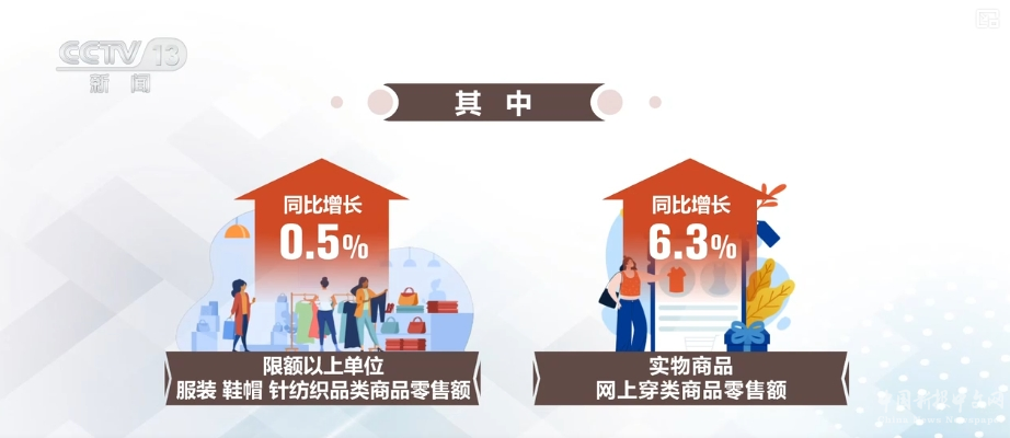 消費(fèi)活力不斷激發(fā),穿類消費(fèi)增長迅速。前7個月,全國限額以上單位消費(fèi)品零售總額105321億元,同比增長2.7%。其中,限額以上單位服裝、鞋帽、針紡織品類商品零售額同比增長0.5%,實(shí)物商品網(wǎng)上穿類商品零售額同比增長6.3%。