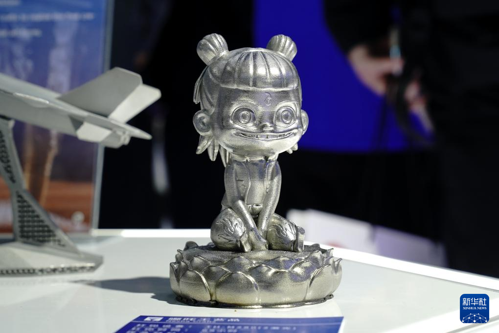 3月17日在第十一屆亞洲3D打印、增材制造展覽會(huì)上展示的3D打印的哪吒工藝品。