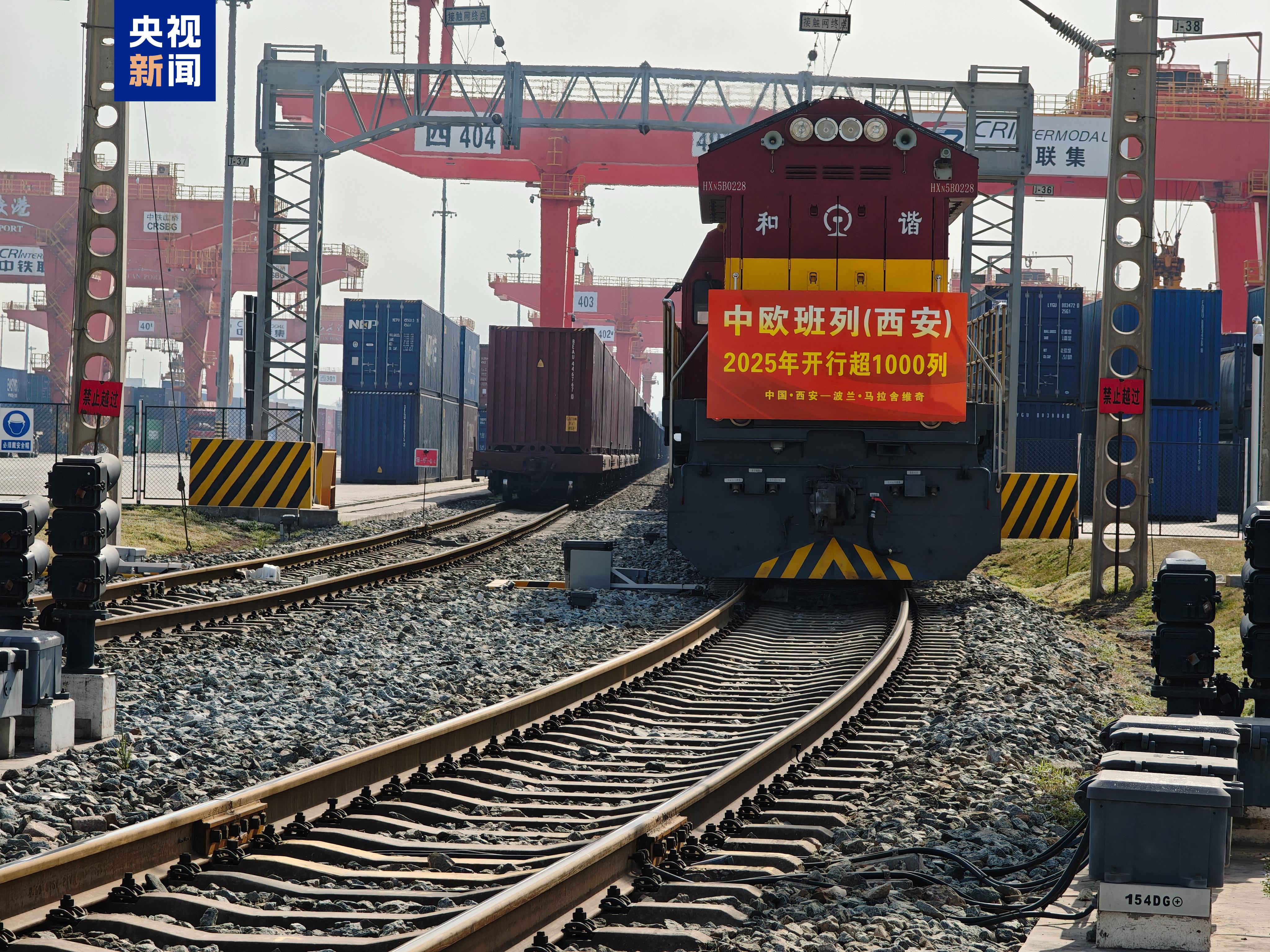 3月21日上午,滿載著電子產(chǎn)品、機械配件、化工產(chǎn)品等貨物的X8489次中歐班列從西安國際港站緩緩駛出,一路向西開往波蘭馬拉舍維奇,標(biāo)志著中歐班列(西安)2025年開行量超1000列,較2024年提前8天突破千列大關(guān)。