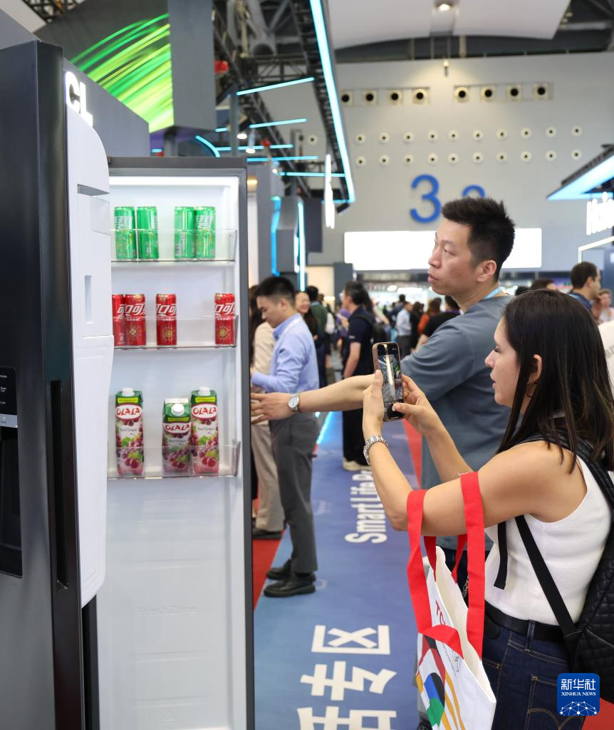 4月16日,客商在廣交會(huì)上參觀了解一款智能冰箱。