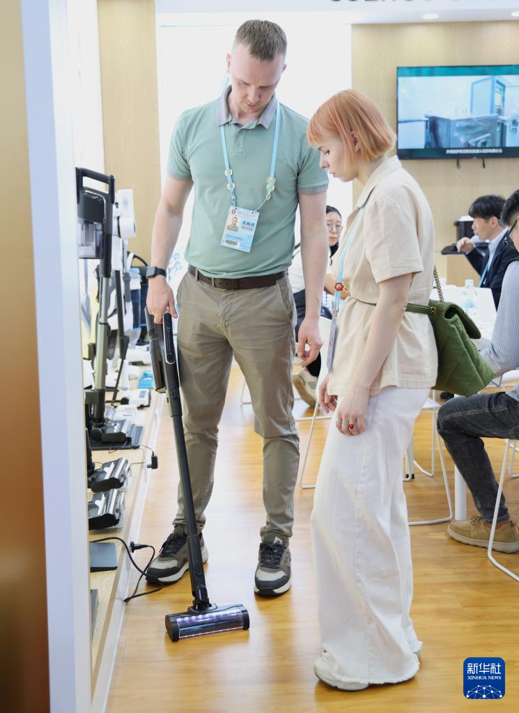 4月16日,客商在廣交會(huì)上參觀體驗(yàn)一款吸塵器。