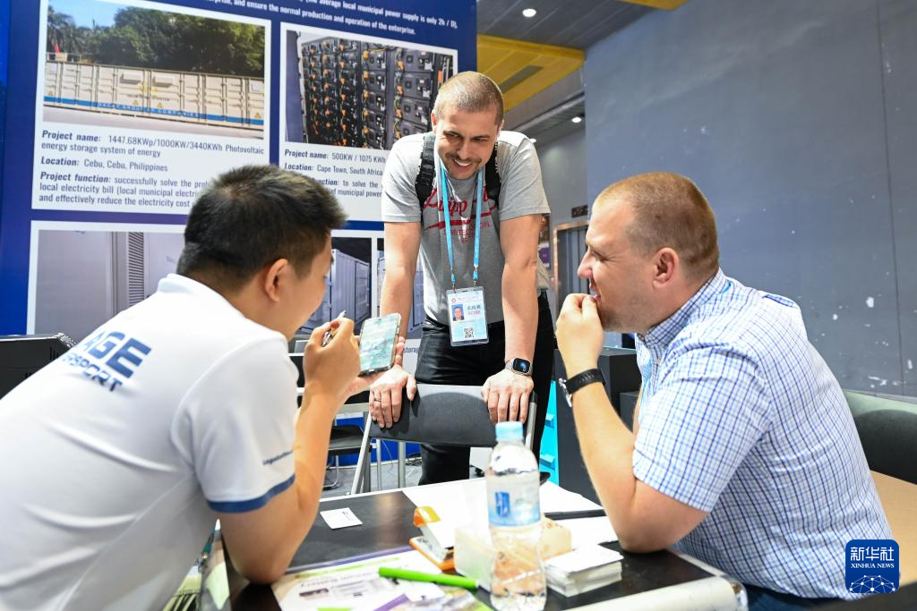 4月16日,客商在第137屆廣交會(huì)的新能源展區(qū)了解產(chǎn)品。