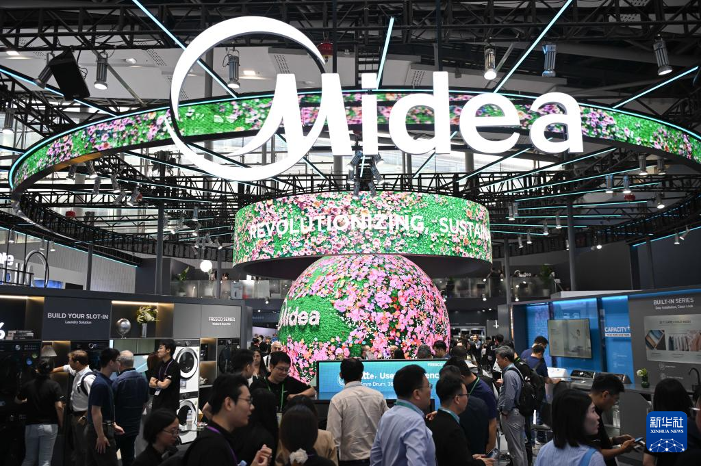 這是4月15日拍攝的第137屆廣交會(huì)智慧生活專區(qū)的美的展臺(tái)。