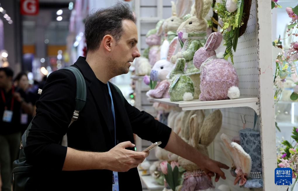 客商在廣交會(huì)上參觀選購(gòu)工藝品(4月23日攝)。