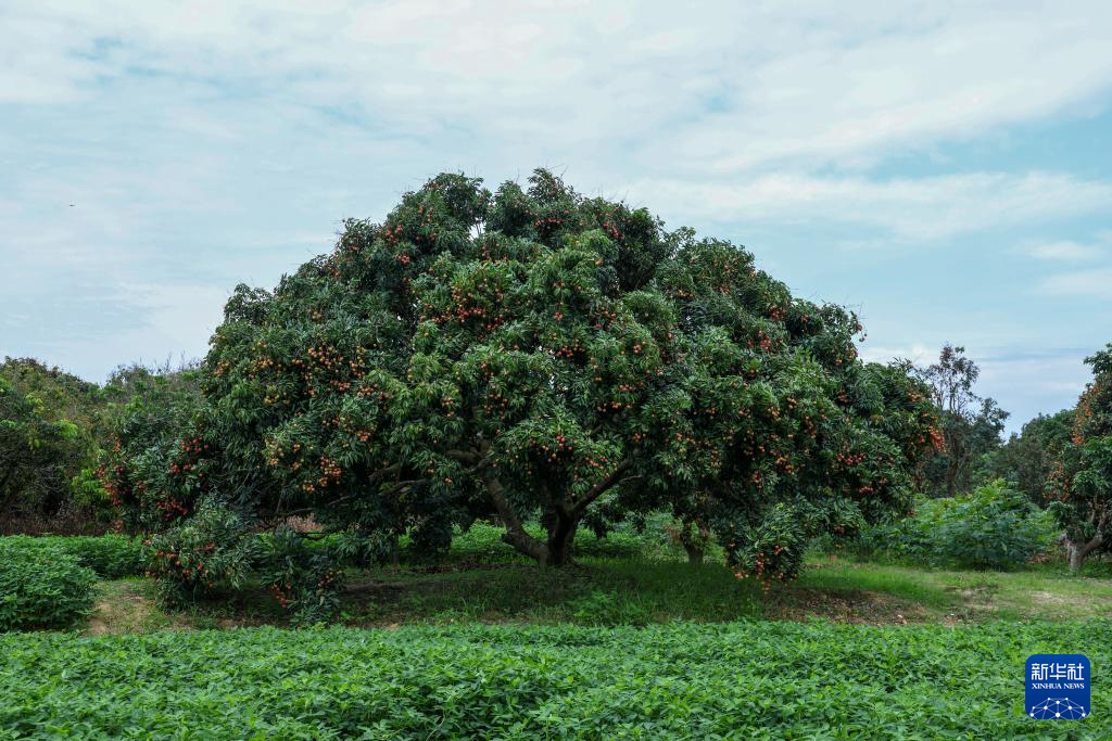 這是6月5日在廣東茂名高州一處果園拍攝的掛滿荔枝果的荔枝樹。