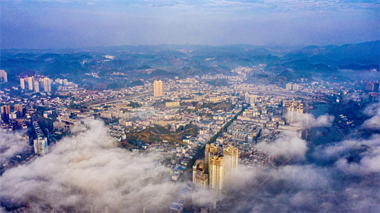 新晃侗族自治縣晃州鎮(zhèn)鳥瞰圖。