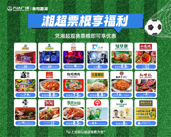 酃湖萬(wàn)達(dá)廣場(chǎng)面向持有“湘超”比賽票根的球迷,推出專屬折扣。