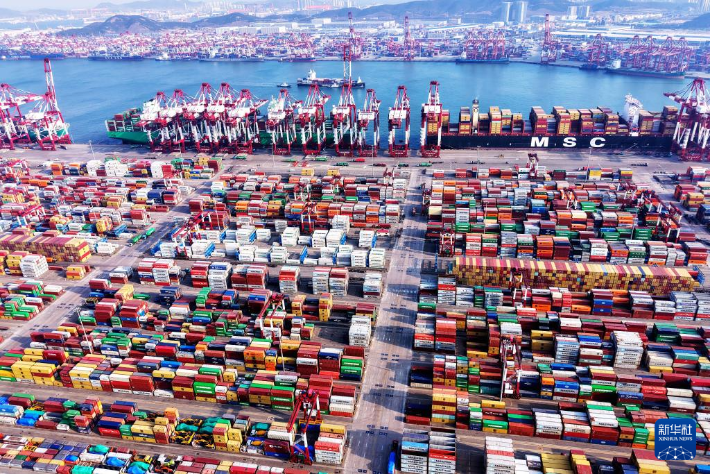 這是2月23日拍攝的山東港口青島港外貿(mào)集裝箱碼頭(無人機(jī)照片)。