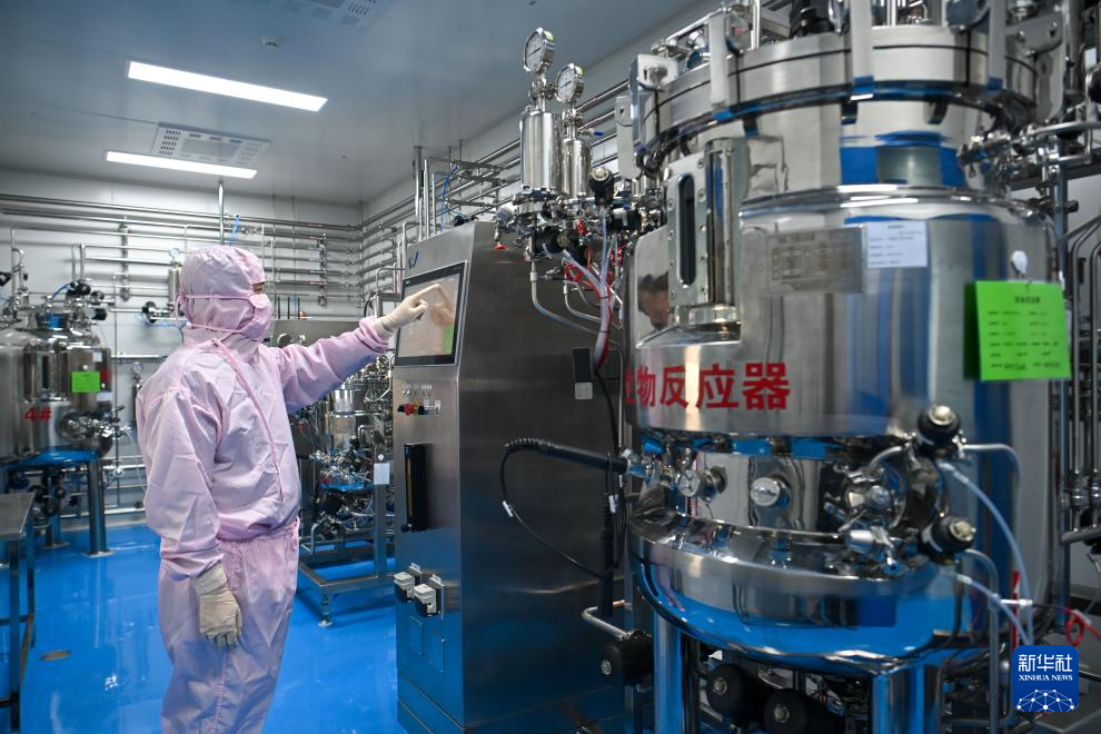 在位于京津中關(guān)村科技城的中科拜克(天津)生物藥業(yè)有限公司,生產(chǎn)人員在生物制劑車間工作(2月20日攝)。