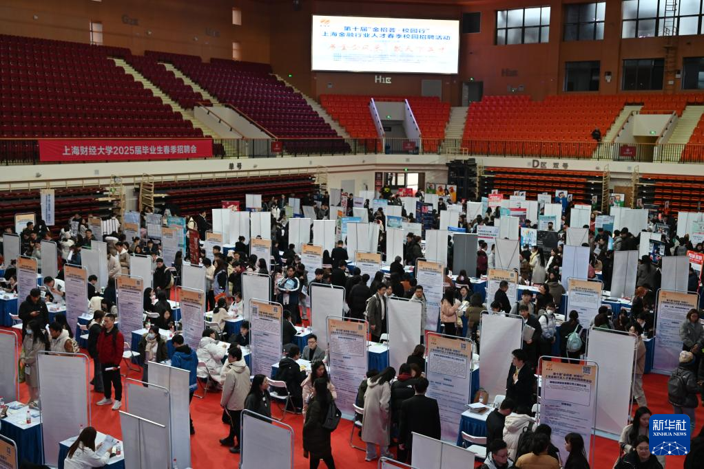 3月4日在上海財(cái)經(jīng)大學(xué)國(guó)定路校區(qū)新體育館拍攝的招聘會(huì)現(xiàn)場(chǎng)。