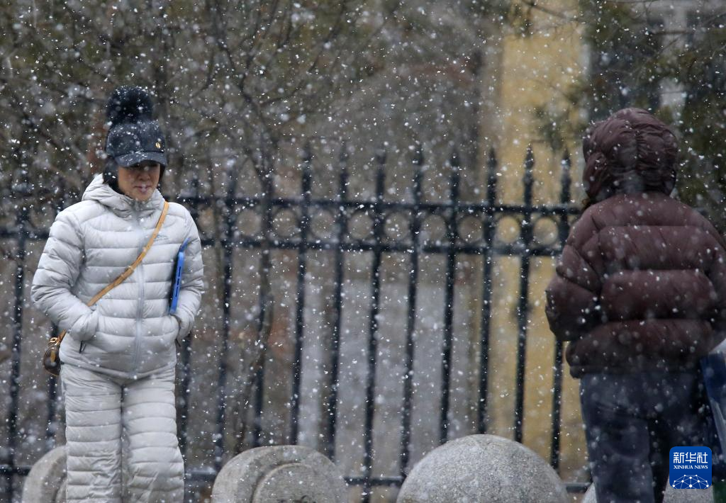 3月12日,市民在哈爾濱市南崗區(qū)一處廣場上冒雪出行。