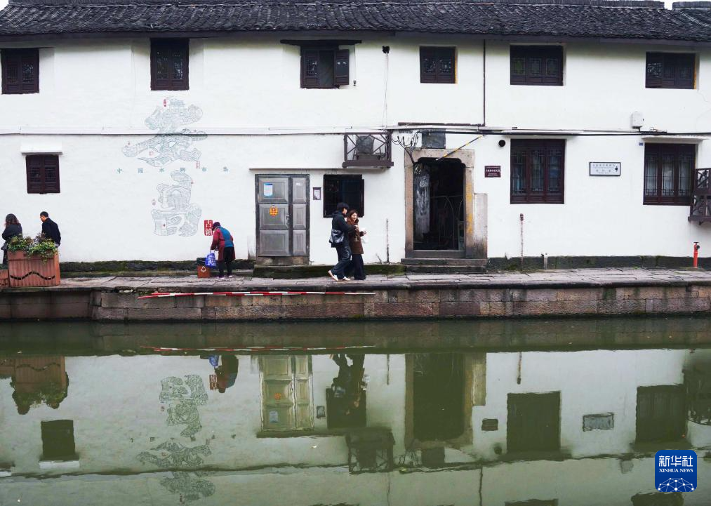 3月29日,人們走在安昌古鎮(zhèn)河道邊的小路上。