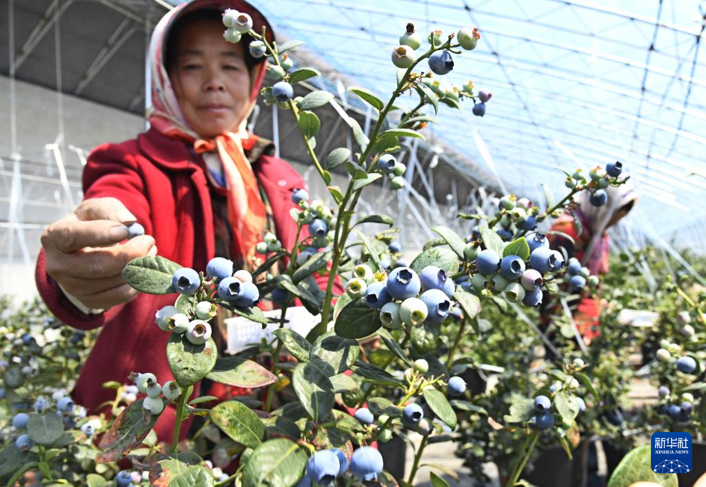 3月30日,村民在青島西海岸新區(qū)張家樓街道多彩農(nóng)場采摘藍莓。