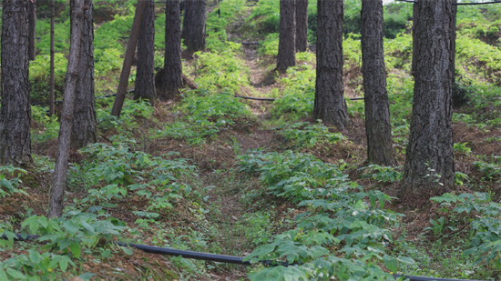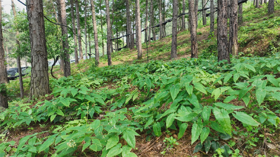 據(jù)國(guó)富生物負(fù)責(zé)人朱春燕介紹,自2021年來(lái),該公司就從廣東甄選優(yōu)質(zhì)種源,依托庫(kù)宗橋鎮(zhèn)山地、林地資源和良好的生態(tài)環(huán)境,通過(guò)“村集體+合作社+農(nóng)戶”產(chǎn)業(yè)化發(fā)展模式,采取林下套種、遮陽(yáng)網(wǎng)點(diǎn)種等種植方式,布局種植具有更高淫羊藿苷、黃酮含量的高品質(zhì)淫羊藿,經(jīng)過(guò)多年試種和測(cè)產(chǎn),已攻堅(jiān)系列技術(shù)難題,單畝產(chǎn)量和種植面積均在去年的基礎(chǔ)上翻倍,已實(shí)現(xiàn)了畝產(chǎn)100公斤,種植面積2000余畝。目前,基地已流轉(zhuǎn)土地3000余畝,培育成熟的300畝淫羊藿莖、葉產(chǎn)量可達(dá)20噸以上,產(chǎn)值突破了500萬(wàn)元。