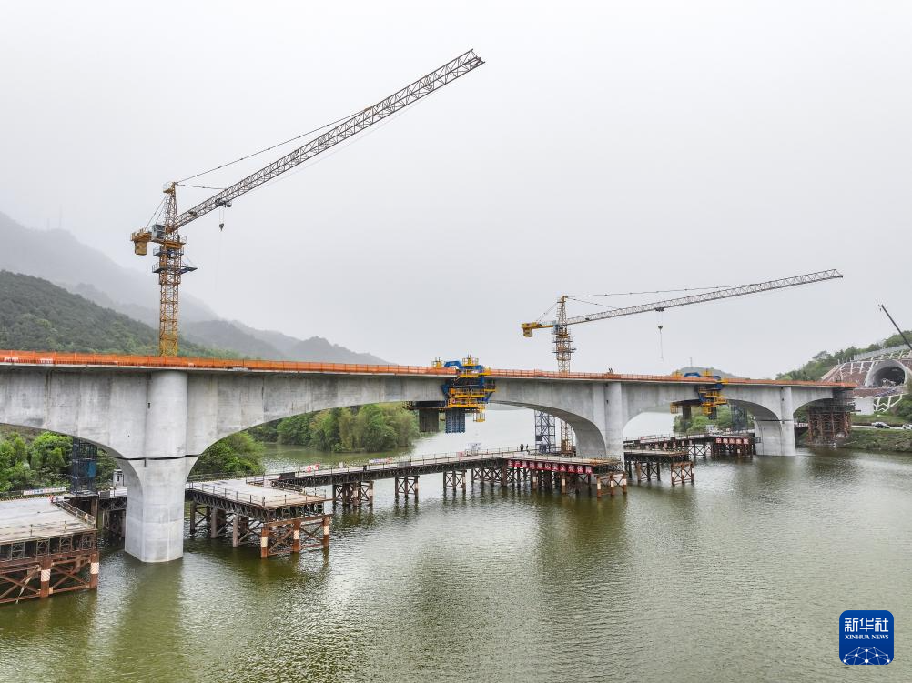 這是4月12日拍攝的合龍后的成渝中線高鐵玄天湖雙線大橋。