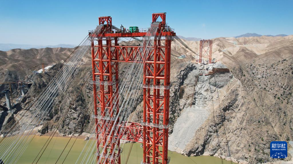 這是5月10日拍攝的蘭永臨高速公路洮河大橋纜索吊裝系統(tǒng)(無人機照片)。