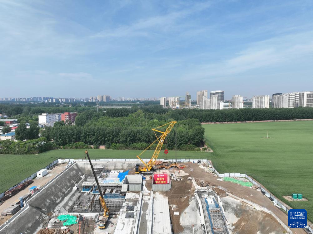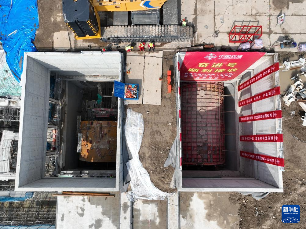 這是北京軌道交通22號(hào)線(平谷線)潮白大街站——高樓站左線盾構(gòu)機(jī)掘進(jìn)終點(diǎn)(5月10日攝,無(wú)人機(jī)照片)。