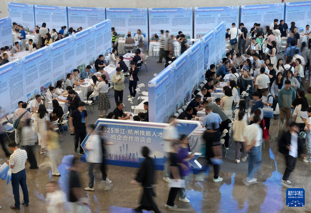 這是5月13日拍攝的2025浙江·杭州技能人才校企合作洽談會(huì)現(xiàn)場(chǎng)。