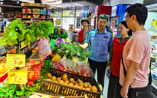 2025年5月19日,在安徽省合肥市廬江縣東顧山街道一家超市,街道辦事處會(huì)同公安派出所正在安排布置防詐標(biāo)語(yǔ)。