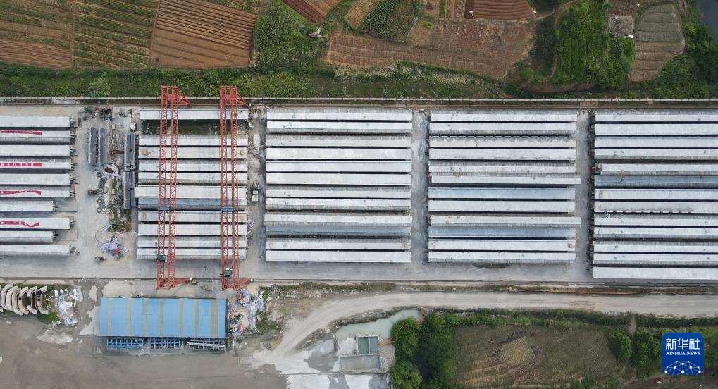 銅陵江北港鐵路專用線T梁預(yù)制施工現(xiàn)場(5月26日攝,無人機(jī)照片)。