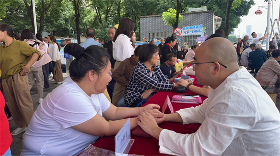 活動(dòng)現(xiàn)場(chǎng),中醫(yī)養(yǎng)生、婦兒保健等義診臺(tái)前人潮涌動(dòng)。