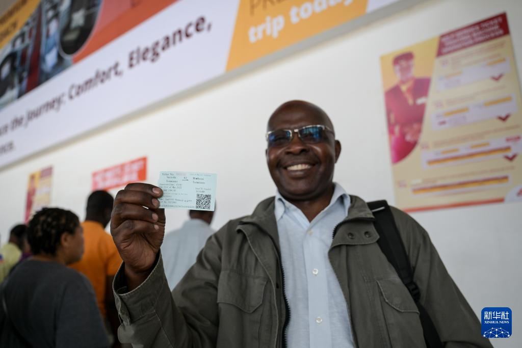 5月31日,在蒙內(nèi)鐵路內(nèi)羅畢站,一名前往蒙巴薩的乘客展示車(chē)票。