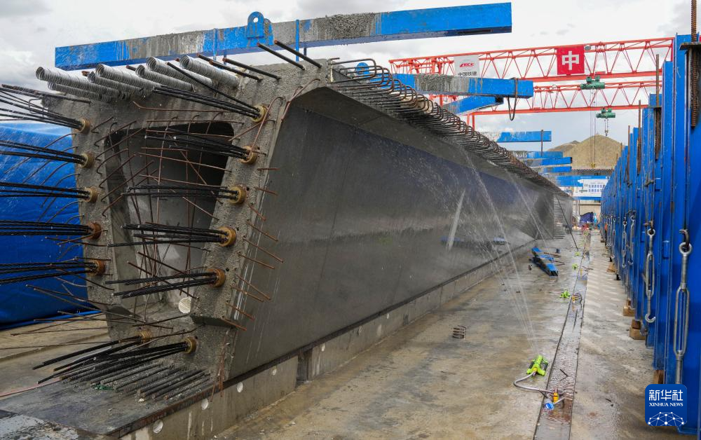薩熱路跨江大橋位于西藏山南市乃東區(qū),是山南市"十四五"重大市政基礎(chǔ)設(shè)施項(xiàng)目。6月18日,第一片箱梁養(yǎng)護(hù)強(qiáng)度達(dá)到設(shè)計(jì)標(biāo)準(zhǔn),大橋建設(shè)進(jìn)入架梁施工階段。260余名施工人員日夜奮戰(zhàn)在鋼棧橋和兩岸的橋梁結(jié)構(gòu)建設(shè)中。