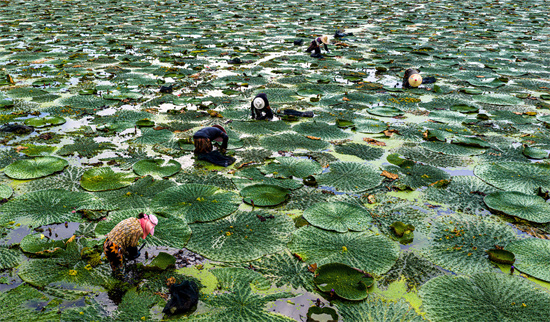 芡實又名“雞頭米”,具有較高的營養(yǎng)及藥用價值。近年來,廬江縣充分發(fā)揮楊柳圩豐沛的水鄉(xiāng)資源優(yōu)勢,鼓勵農(nóng)民種植水生滋補植物芡實。目前,該縣芡實種植面積已達(dá)2.4萬余畝,僅此一項當(dāng)?shù)剞r(nóng)民每年可進(jìn)賬達(dá)7000多萬元。 (巢志斌  攝)