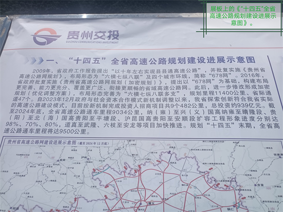 大橋邊,標(biāo)有“貴州交投”字樣的展板上,“十四五”全省高速公路規(guī)劃建設(shè)進(jìn)展示意圖上這樣頗分明地寫著——