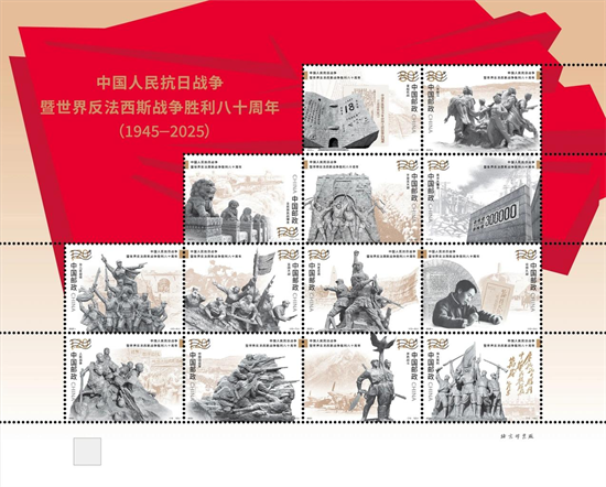 根據(jù)黨中央有關中國人民抗日戰(zhàn)爭暨世界反法西斯戰(zhàn)爭勝利80周年紀念活動安排,中國郵政于2025年9月3日發(fā)行《中國人民抗日戰(zhàn)爭暨世界反法西斯戰(zhàn)爭勝利八十周年》紀念郵票1套13枚、小型張1枚,全套面值為20.8元。郵票計劃發(fā)行數(shù)量為600萬套、小型張為500萬枚。