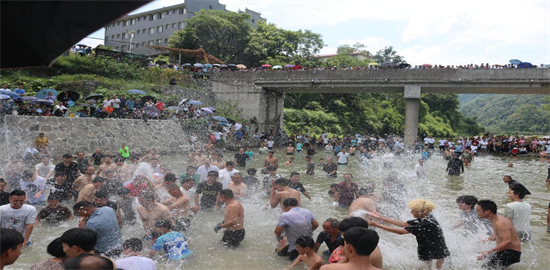 “湘黔邊界區(qū)域勞務協(xié)作暨慶八一民族團結聯(lián)歡盛會”捉魚活動現(xiàn)場    楊曼達攝