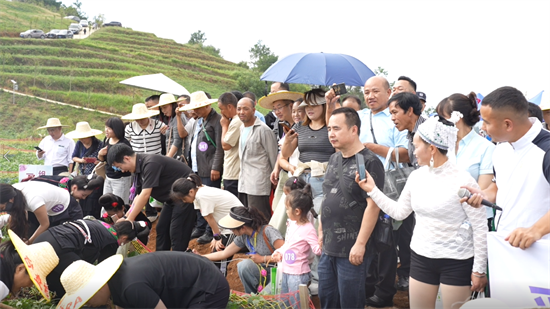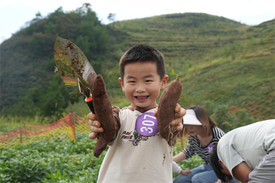 秋分時(shí)節(jié),碩果盈枝。9月27日,以“紫韻金秋·共赴未來”為主題的臺(tái)江縣臺(tái)盤鄉(xiāng)棉花村第二屆高山紫薯豐收節(jié)在該村豹眼山“茶+薯”基地隆重舉行。500余畝紫薯基地里,采收、分揀、體驗(yàn)的忙碌身影與歡聲笑語交織,共同描繪出一幅產(chǎn)業(yè)興、鄉(xiāng)村美、農(nóng)民富的動(dòng)人畫卷。