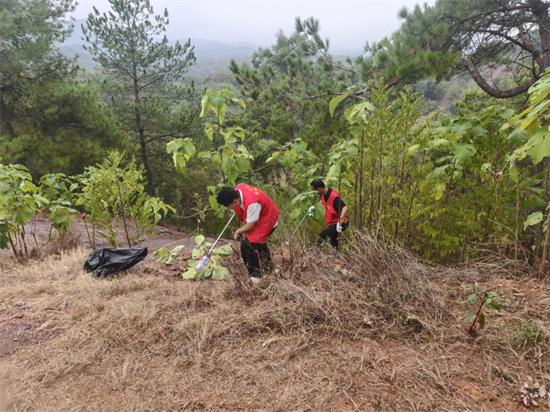 活動(dòng)現(xiàn)場(chǎng),黨建引領(lǐng)的紅色力量隨處可見(jiàn):黨員們始終沖在最前,有的彎腰用垃圾夾精準(zhǔn)夾起石階縫里的塑料袋,有的蹲在草叢中翻找隱藏的紙屑,還不時(shí)招呼身邊同事“這邊角落還有廢棄包裝”。在修禪古道,黨員帶頭爬上緩坡清理枯枝敗葉;空中走廊的瞭望臺(tái)旁,干部們踮腳擦拭護(hù)欄上的灰塵;最長(zhǎng)的抗戰(zhàn)步道上,大家更是逐段排查,從赤松觀到九垅塘,不放過(guò)任何一處死角。非黨員干部職工也緊隨其后,有的拎著垃圾袋來(lái)回轉(zhuǎn)運(yùn),有的用掃帚清掃步道浮塵,齊心協(xié)力的身影成了游步道上最動(dòng)人的風(fēng)景。短短幾小時(shí),原本散落著白色垃圾的游步道變了樣。