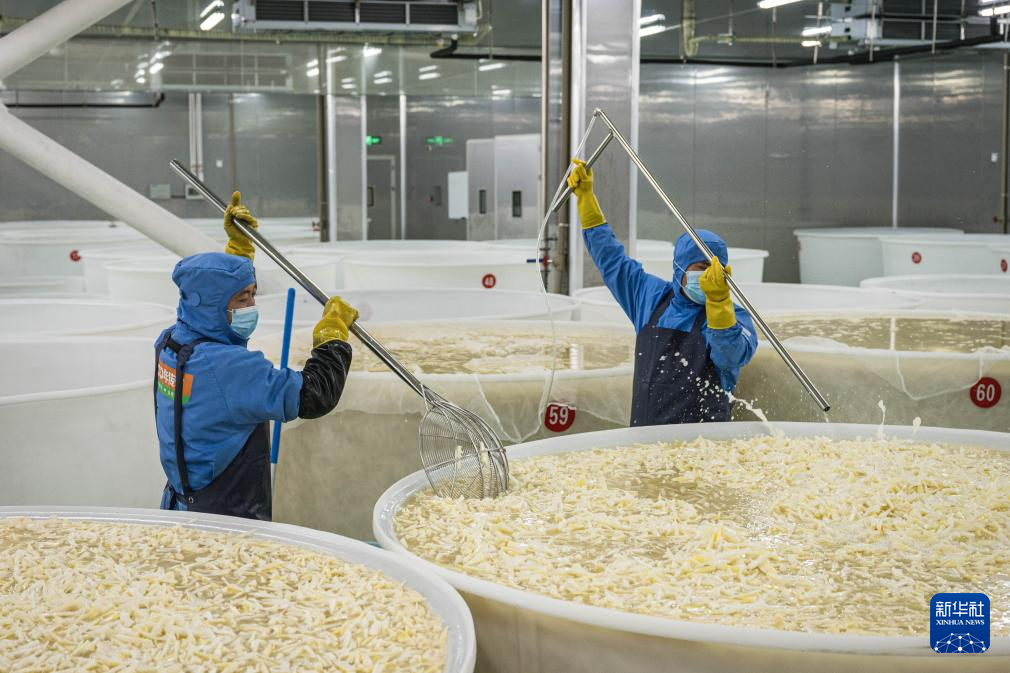 10月23日,工人在云南省昭通市鎮(zhèn)雄縣五德鎮(zhèn)的赤水源綠色食品加工產(chǎn)業(yè)園竹筍生產(chǎn)車間內(nèi)腌制竹筍。