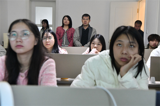 10月24日,貴州省凱里市鴨塘街道碧桂園小區(qū),凱里學(xué)院師生在“實(shí)習(xí)實(shí)訓(xùn)基地”聽(tīng)取學(xué)生的實(shí)習(xí)成果匯報(bào)。(楊仁海 攝)