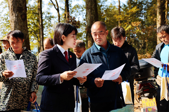 一株古樹(shù)歷經(jīng)百年風(fēng)霜,一片“紅軍林”承載代代記憶。為扎實(shí)推進(jìn)保護(hù)工作,四部門(mén)多次會(huì)商研判,提前深入當(dāng)?shù)亻_(kāi)展普法宣傳:向村民細(xì)致解讀《古樹(shù)名木保護(hù)條例》,發(fā)放宣傳材料,積極倡導(dǎo)群眾化身“古樹(shù)管家”,通過(guò)定期觀察生長(zhǎng)狀態(tài)、及時(shí)反饋異常情況,共同守護(hù)這份生態(tài)與歷史財(cái)富。