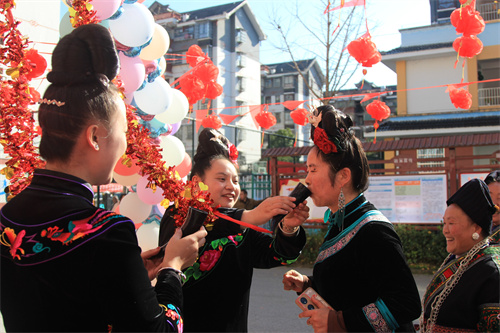 冬日暖陽(yáng),溫柔地鋪灑在北門灣社區(qū)樓宇間。這里,空氣里彌漫的不僅是陽(yáng)光的味道,更有蘆笙的悠揚(yáng)、長(zhǎng)桌宴上濃郁的酸湯和一陣陣此起彼伏的歡呼與喝彩。2025年苗年節(jié)前夕,這個(gè)由來(lái)自全縣9個(gè)鄉(xiāng)鎮(zhèn)55個(gè)村寨的苗族同胞組成的大家庭,正用一場(chǎng)融匯文、體、美的“三重奏”,生動(dòng)演繹著從“村民”到“新市民”的幸福變奏曲。