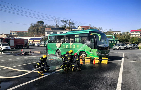 演練模擬客運(yùn)車輛突發(fā)交通事故,圍繞道路交通事故應(yīng)急救援設(shè)置應(yīng)急救援、現(xiàn)場救治等貼近“實(shí)戰(zhàn)”科目。