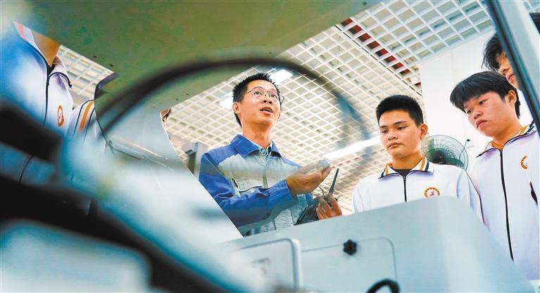11月12日,位于定安縣的海南省工業(yè)學(xué)校,老師在講解無人車操作。該校通過校企合作、產(chǎn)教融合模式,為企業(yè)培養(yǎng)專業(yè)技術(shù)人才。
