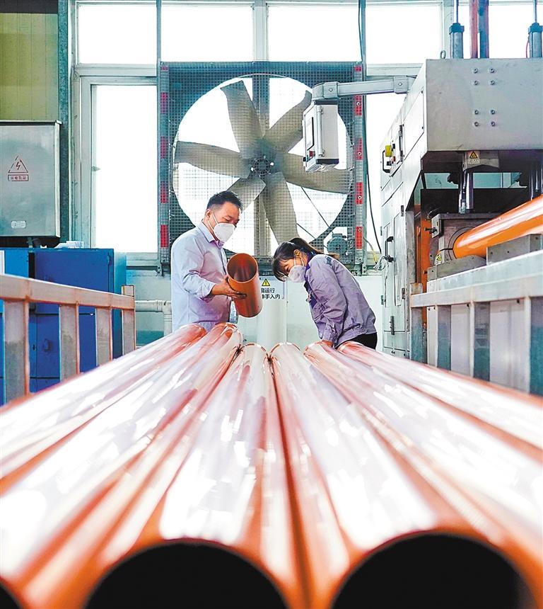 11月12日,工人在定安縣海南聯(lián)塑工廠生產(chǎn)車間檢查管道。近年來,海南聯(lián)塑通過數(shù)字化、智能化轉(zhuǎn)型助推行業(yè)發(fā)展。