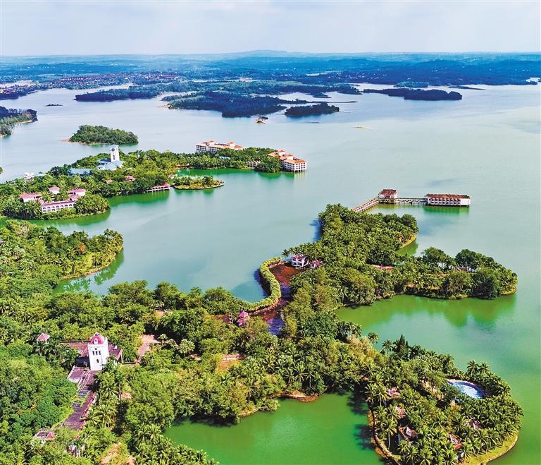 11月12日拍攝的海南省定安縣南麗湖國家濕地公園。該濕地公園涵蓋湖泊、濕地、鳥類棲息地和林地,有多種國家級或省級保護動植物資源。